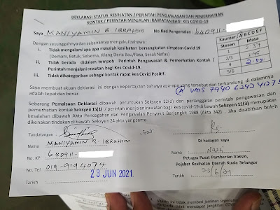 Mendapat Vaksin Covid-19 Dos 1 pada 23 Jun 2021 di Stadium Tertutup Kuala Selangor.